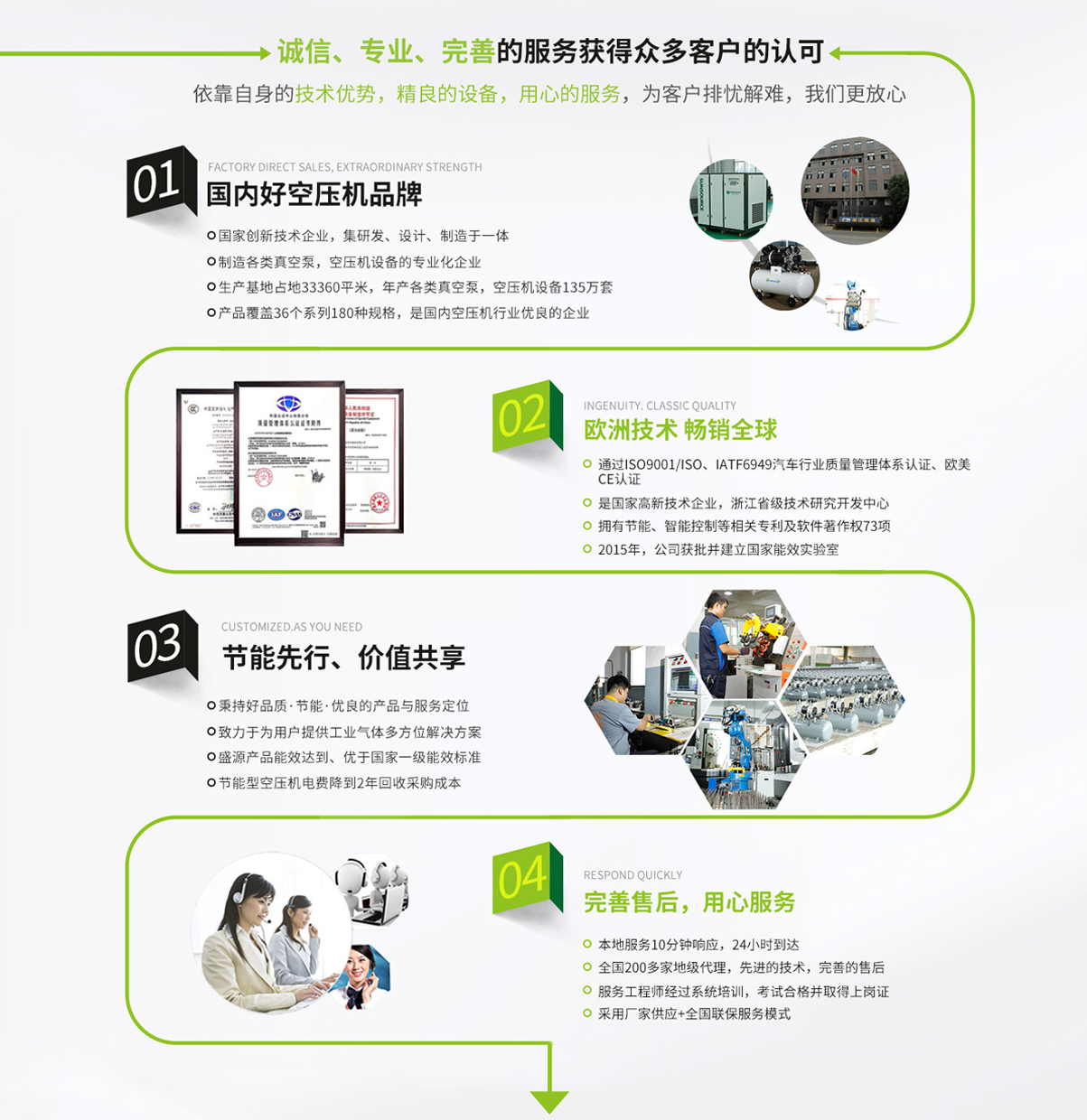 浙江盛源空壓機(jī)制造有限公司是一家研究制造無(wú)油真空泵系列、新能源電動(dòng)空壓機(jī)、空氣壓縮機(jī)設(shè)備、器材、永磁伺服電機(jī)、工業(yè)投資等多元化經(jīng)營(yíng)的大型企業(yè),是國(guó)家高新技術(shù)企業(yè),浙江省級(jí)技術(shù)研究開(kāi)發(fā)中心。